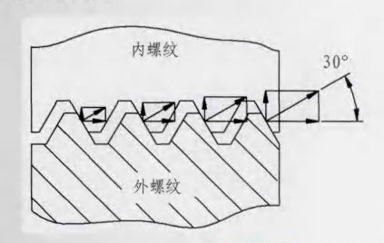 DTFLOCK螺母在內(nèi)螺紋的牙底處有一個(gè)30°的楔形斜面,當(dāng)螺栓、螺母擰緊時(shí),螺栓的牙尖就緊緊地頂在螺母的楔形斜面上,從而產(chǎn)生了很大的鎖緊力。由于牙形的角度改變,使施加在螺紋間接觸所產(chǎn)生的法向力與螺栓軸成60°角(見(jiàn)圖2),而不是像普通螺紋那樣的30°角,DTFLOCK螺紋法向壓力遠(yuǎn)遠(yuǎn)大于扣緊壓力,因此,所產(chǎn)生的防松摩擦力也就必然大大增加了。